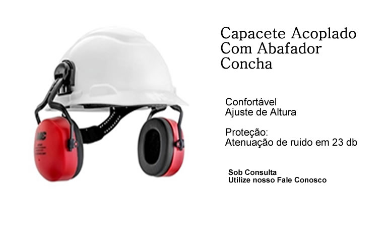 O Abafador Acoplado ao Capacete, leve e confortável tem ajuste de altura para a cabeça.Protege em 23 db dos ruidos do ambiente.